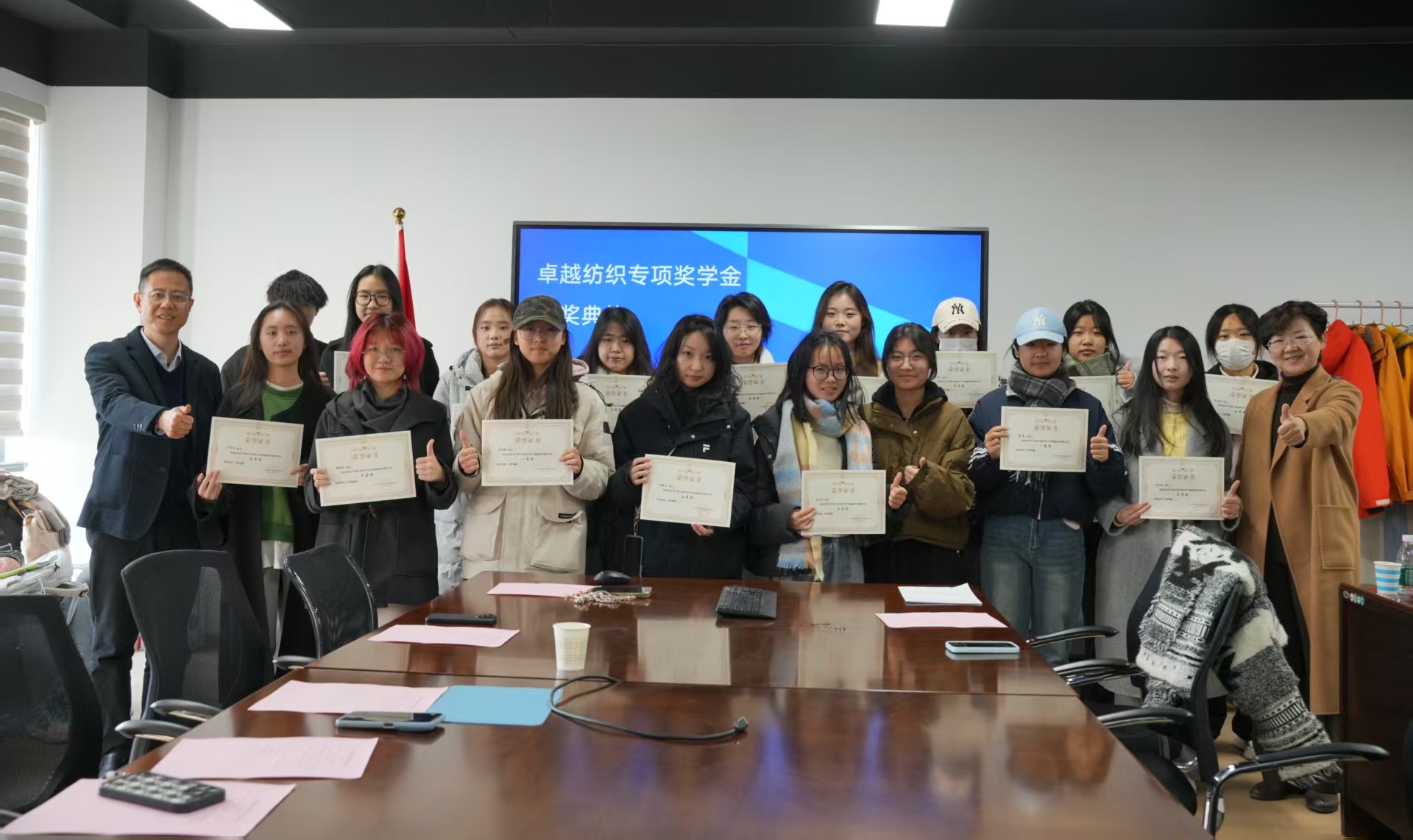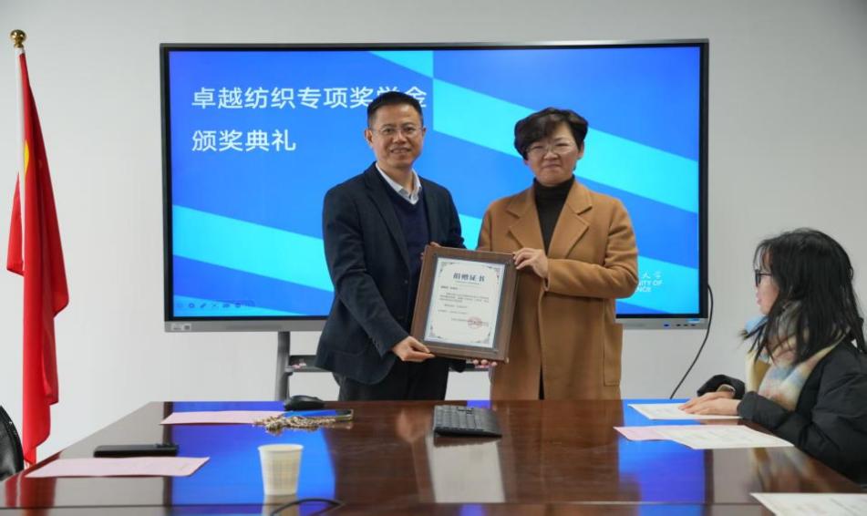 为表彰先进、树立榜样,激励广大学子深耕专业、追求卓越,12月26日,纺织服装学院在行政楼1805会议室举行2025年“卓越纺织”专项奖学金颁奖典礼,学院党委书记朱君璇、院长辛斌杰、党委副书记谢志霞及相关教师、学生代表参加。